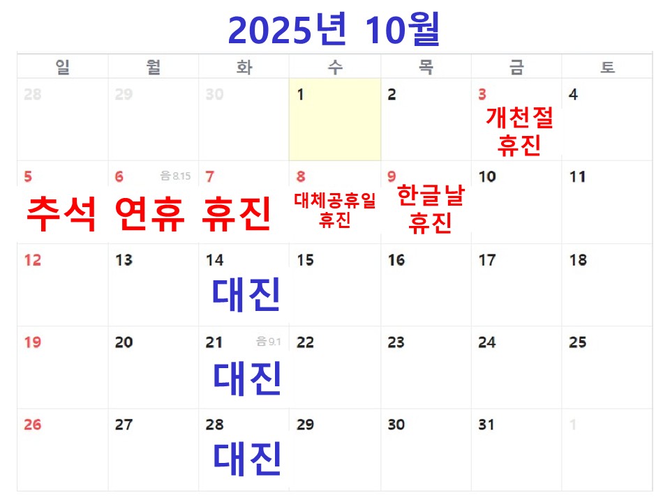 * 10¿ù 3ÀÏ(±Ý) °³ÃµÀý ÈÞÁøÇÕ´Ï´Ù.