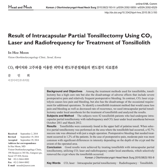 In Hee Moon, MD, Vision Otorhinolaryngology Clinic, Korean J Otorhinolaryngol-Head Neck Surg 2015;58(3):193-9 |